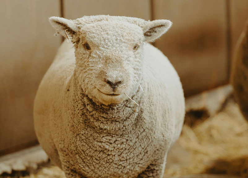 This adorable girl has great confirmation, with that square body we love. Her wool is a lovely oatmeal color and extremely soft to the touch. Pilar enjoys a good scratching and has a very sweet and slightly shy temperament.